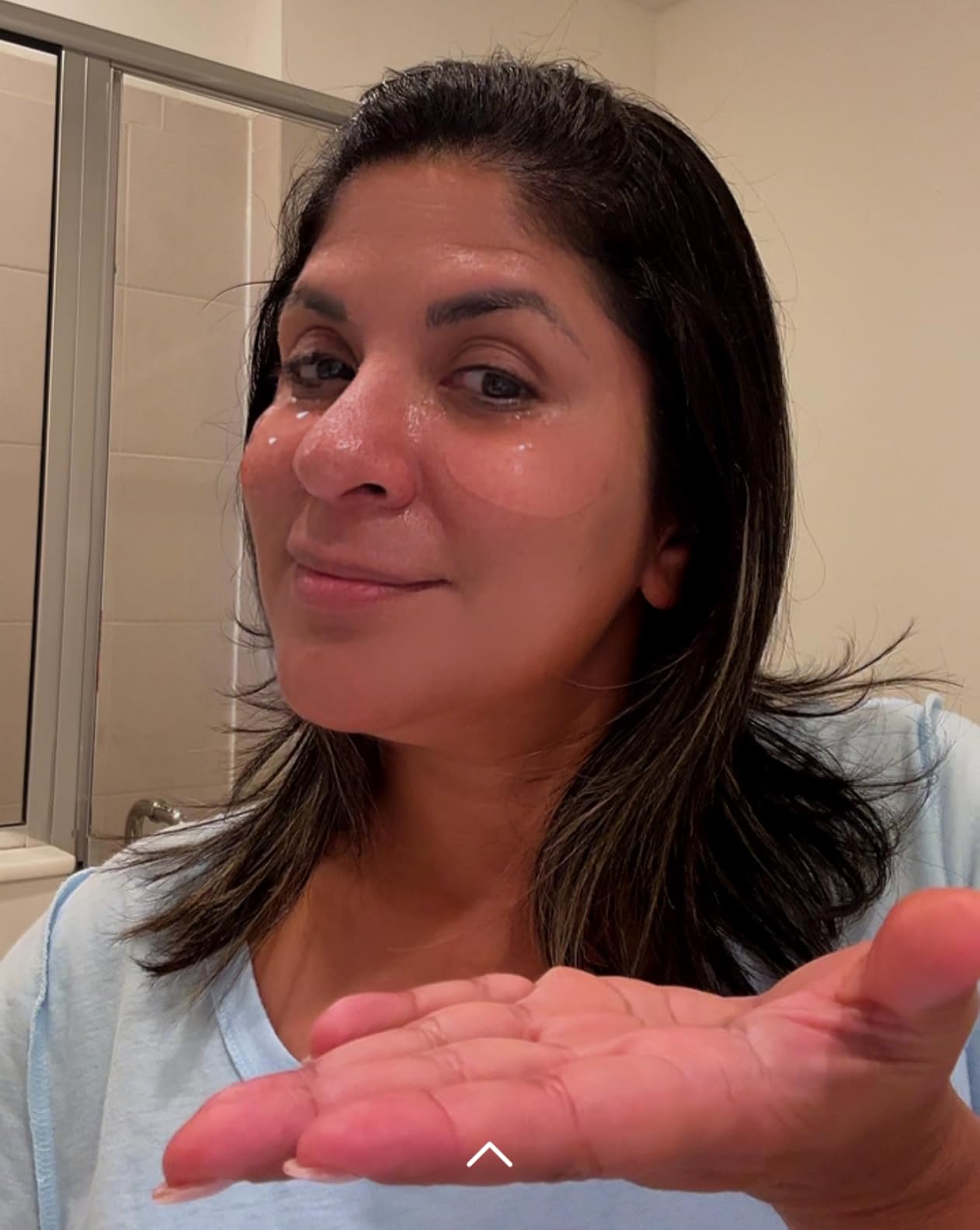 Coloca los parches en la zona deseada (ojos, frente, barbilla o línea de la sonrisa) durante 15–20 minutos y luego retíralos suavemente.